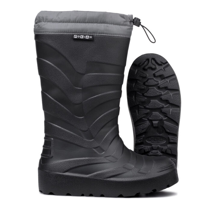 Very light long-shaft rubber boot with a warm felt lining and a tightening collar. The molded boot is made of EVA rubber and is lightweight and easy to put on. The model has a spacious last, also on the shaft. The tightening collar prevents snow from entering the boots. The waterproof boot is suitable for winter use and the material can withstand cold temperatures of -40 Celsius but not heat above +40 °C. Material: 60% synthetic EVA rubber, textured outsole made of EVA rubber. Drying and storage of the boots max + 40 °C. Collar material: 100% polyester. Felt lining: 80% wool – cleaning: hand wash 30 °C. |