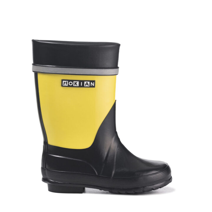 This high-quality boot fits children’s feet perfectly – it supports the heel firmly and provides enough space at the toes for the growing foot. Reflective band around the collar for added visibility and safety – however, not a substitute for wearing a CE-approved reflector. The fast-drying polyester lining is very durable. The outsole does not collect dirt, and the shock-absorbing heel keeps the elastic foot strap of rain pants nicely in place.